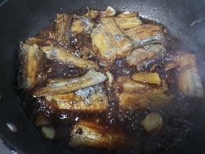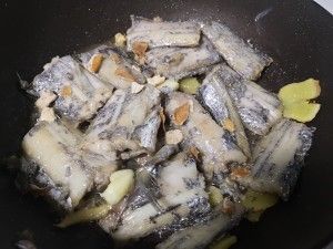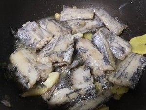 倒入煎好的带鱼,加一勺料酒