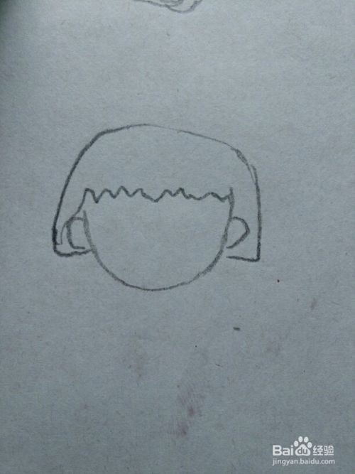 先勾出一个蘑菇头的大体轮廓,这样的发型更能让孩子显得可爱。