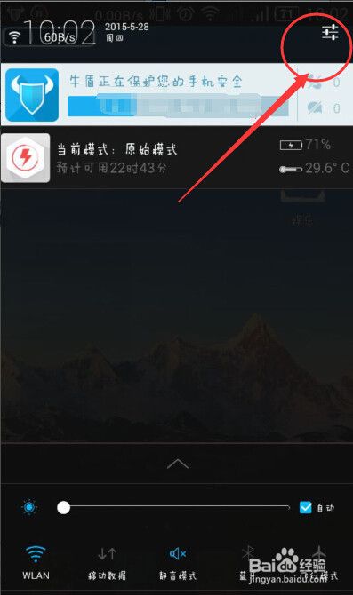 首先,我们将手机拿在手中,下滑最上面的部分,单击设置按钮。