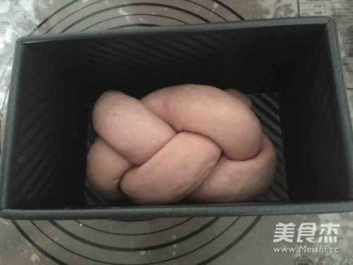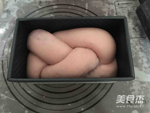 13编成麻花后放入吐司盒里,放入温暖处二次发酵