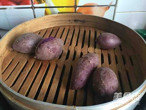 3装入保鲜袋里用擀面杖擀成紫薯泥