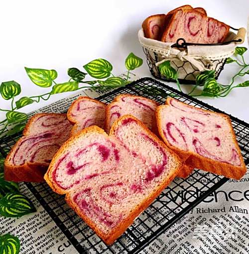 用紫薯蒸熟去皮后加了点砂糖和黄油做了紫薯泥,再用紫薯泥做了吐司,真的好吃哦!