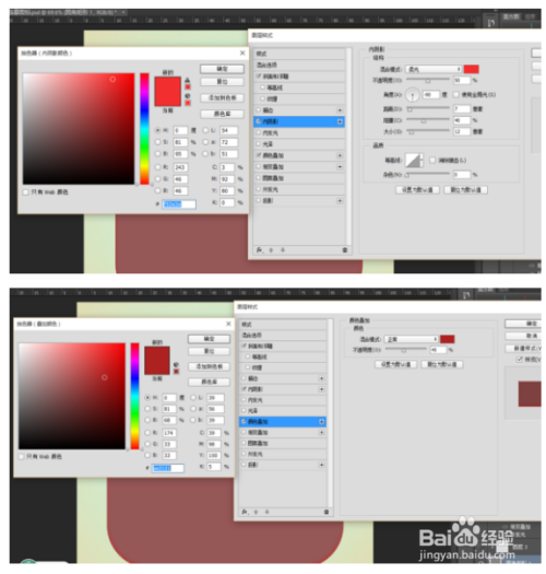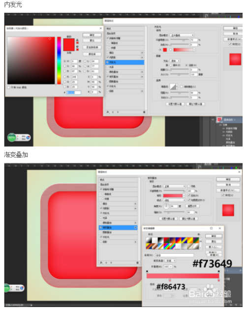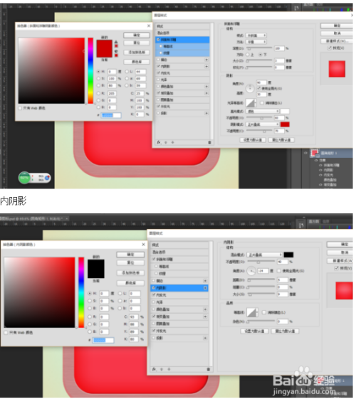 双击圆角矩形添加图层样式~,还有内阴影,颜色叠颜色数值如图所示,数值如下