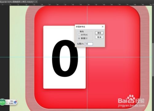 alt+v+e弹出水平线对话框,拉出一条水平为50%,一条垂直为50%的水平线,以便我们调整位置。
