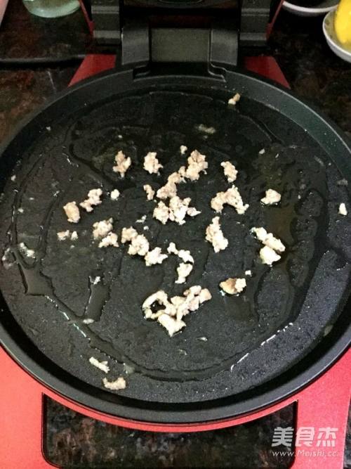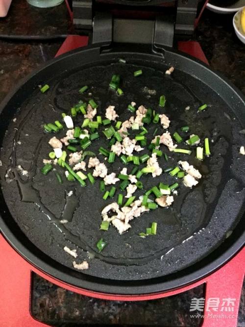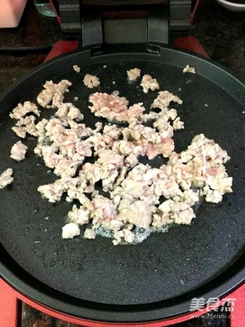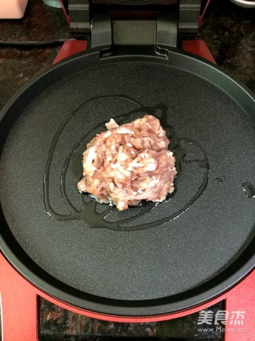 14剩下一些肉末在电饼铛,其余盛出,加入少许油