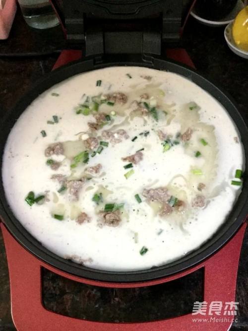 自从有了电饼铛后,就喜欢弄这个吃,今天是加了肉碎的,很好吃