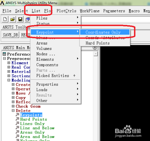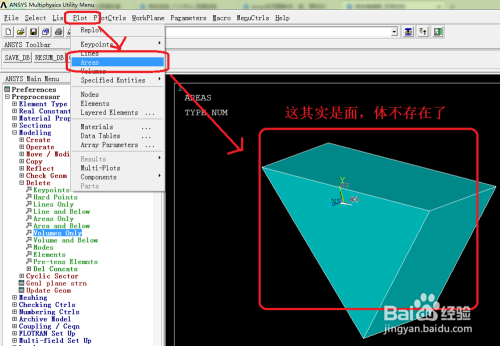 ansys建模时,也会经常采用一些辅助线或辅助面等,那么一旦用完后,我们希望将它们删除掉,下面将详细介绍ansys是如何删除点、线、面和体的。