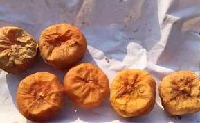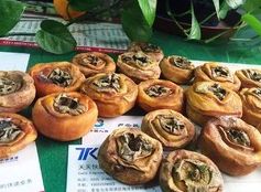 大概几天之后,柿子的水分就会干掉不少,开始有柿饼的雏形了,这会捏捏柿子,柿子是软的呢,这样就可以捏捏柿子把柿子捏平,捏的时候注意力度,别把柿子捏坏家庭自制柿饼的做法