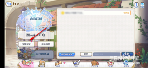 进入到【行会】页面后接着再点击【支援设定】功能。
