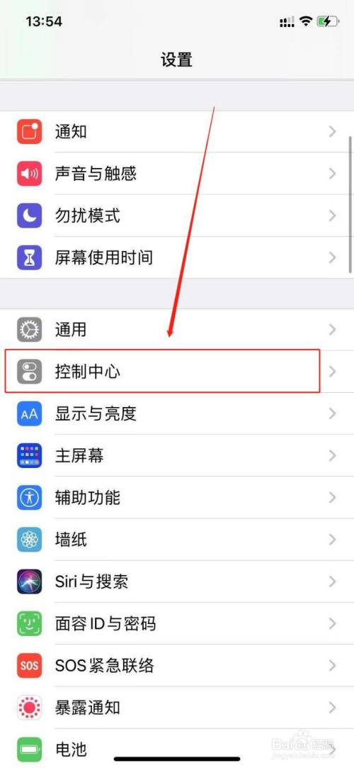 进入设置之后,点击【控制中心】。