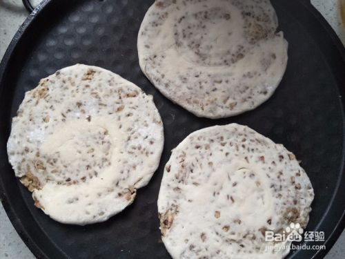 电饼铛加热,热后将饼坯放进去,盖好,四五分钟左右翻个面,再过三分钟取出即可。