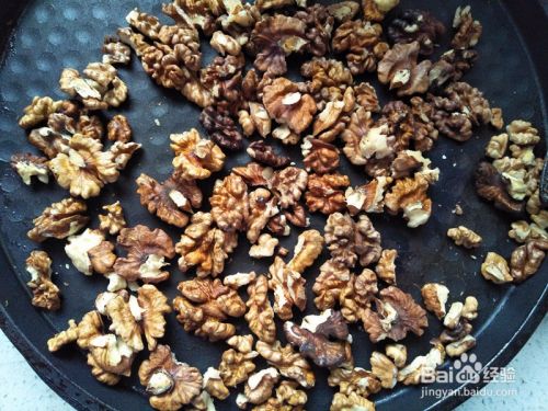 把核桃仁放在电饼档中煎至酥脆,要不停的翻动,以免烤焦