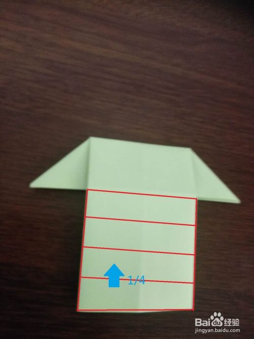 翻过来,将下边的正方形向上折叠1/4。