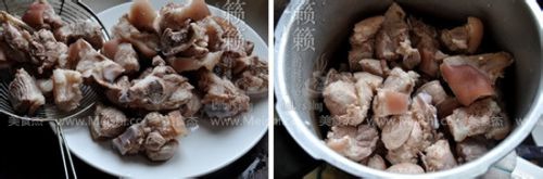 将肉块捞出,清水冲洗干净附着的污物,控干水分