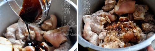 把调料一样样滴丢进去吧,生抽3汤匙、老抽3汤匙、蚝油2汤匙、白酒2汤匙、陈醋3汤匙、冰糖碎2汤匙(大颗粒冰糖),精盐少许(也可不放)