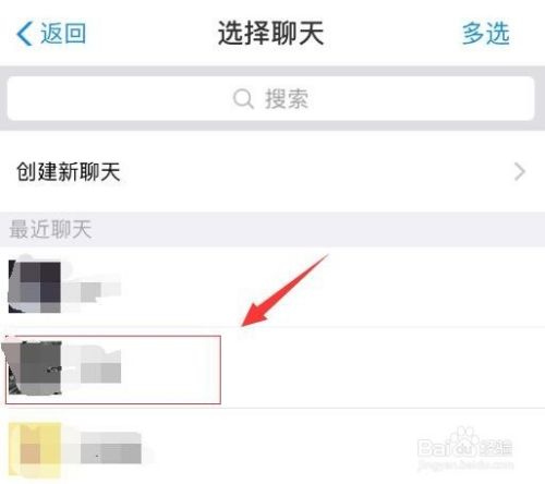 接着,在弹出的“选择聊天”界面中,找到我们要分享名片给好友,点击。如图: