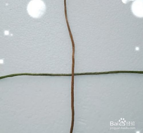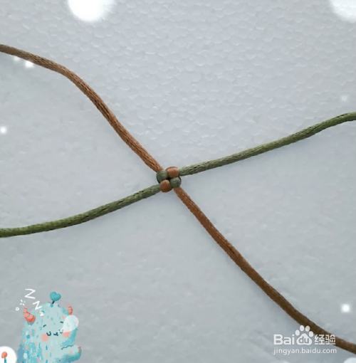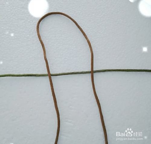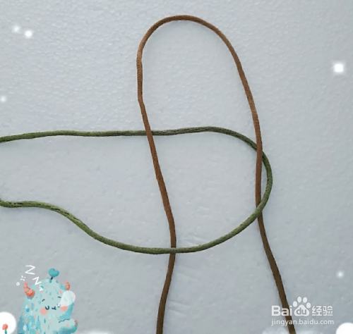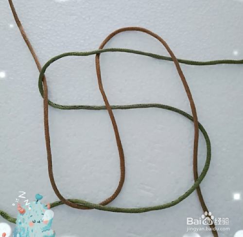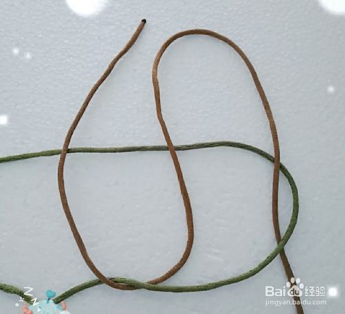 再将绿色上面的线从里到外穿过刚刚的那条棕线上,然后再穿过棕线的右端之下。