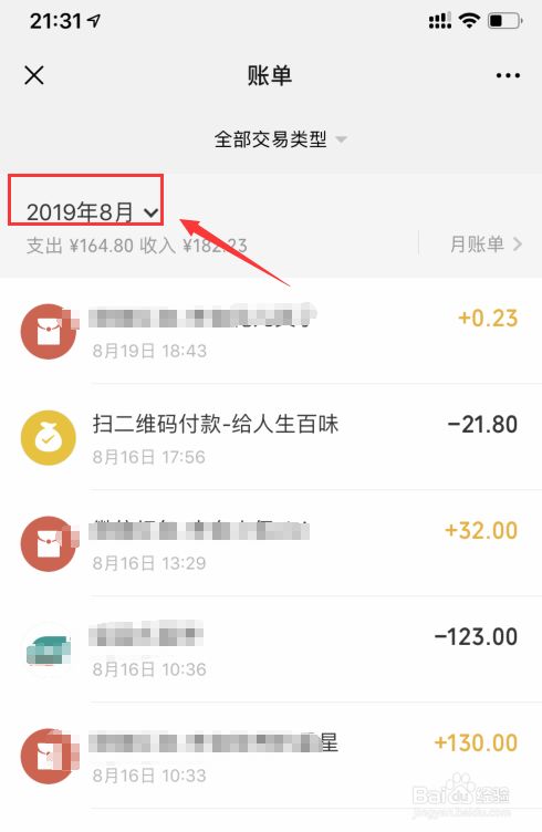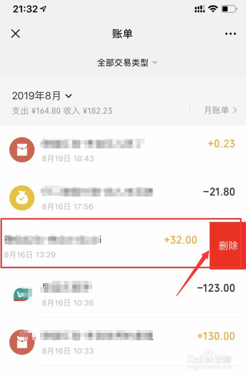 选择一笔要删除的账单,手向左边滑动,点击删除;