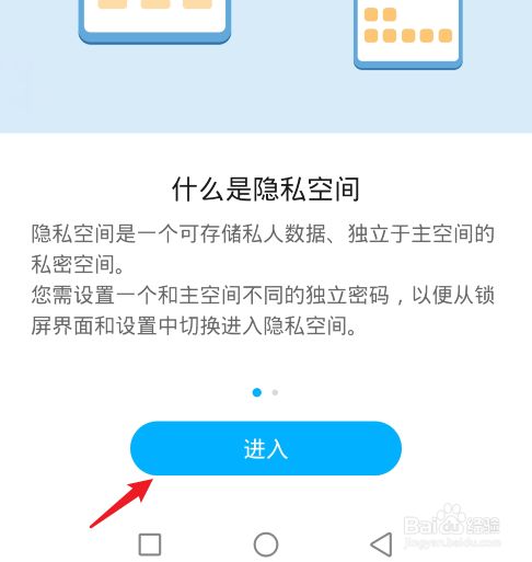 设置隐私空间密码后,点击进入的选项,即可进入第二个系统。