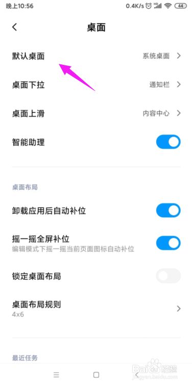 3、把【默认桌面】点击下。