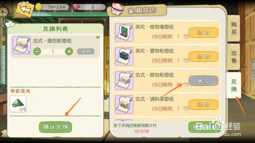 在打开的家具店中,选择其中的面包柜,进行兑换即可取得面包柜。