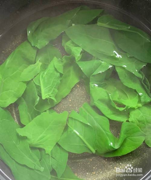 菠菜洗干净,把叶子部分摘下来,放入清水中浸泡一下;