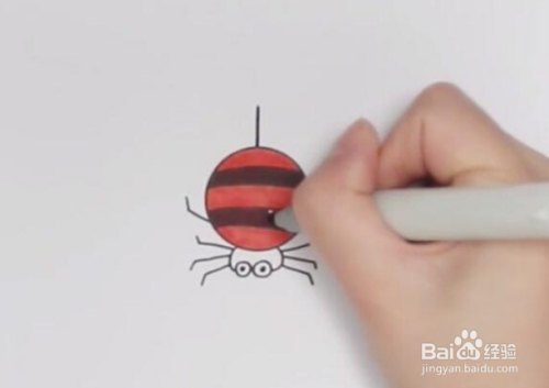 头部涂上黑色,这样蜘蛛的简笔画就画好了。