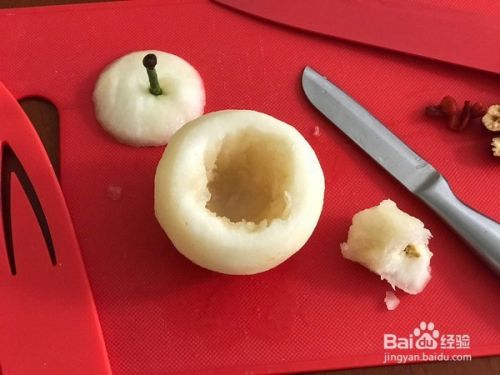 挖出梨胡,可以挖大些空间不过不要挖漏了。