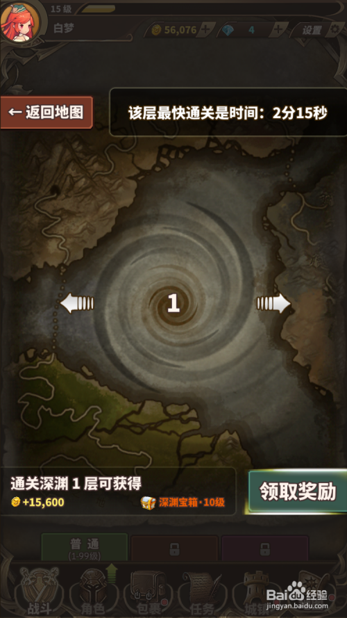 第一关无尽深渊通过后,可以点击领取奖励按钮获得无尽深渊奖励。