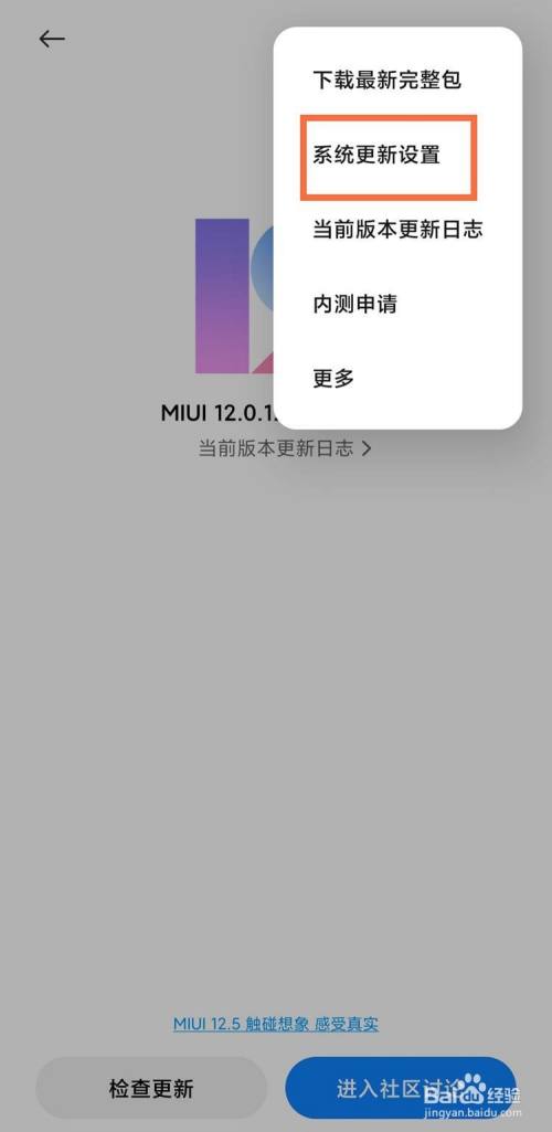 点击右上角的三个点,选择【系统更新设置】。