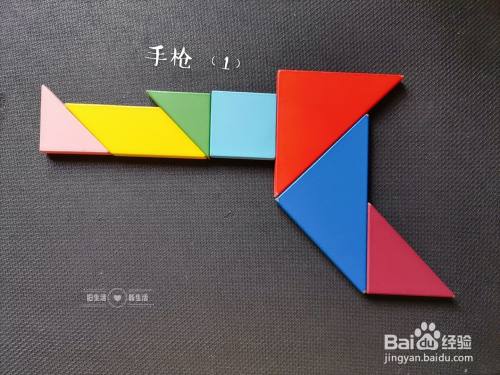最后我们把粉色小三角形摆好,一把手枪就拼好了。