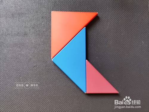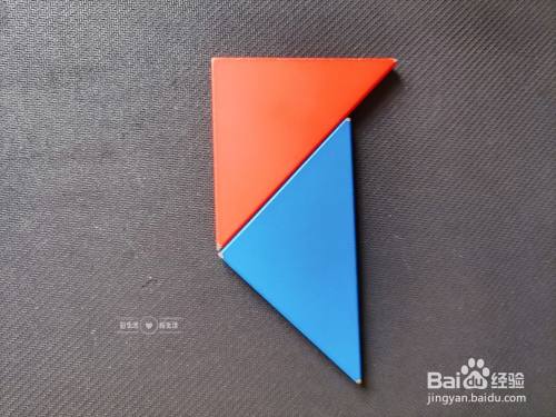 拿出两个大三角形红色和深蓝色,把它拼成下图的样子。