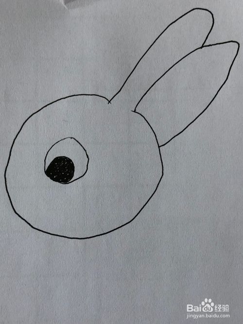 把里面圆涂黑,这样就画出了小白兔的眼睛。
