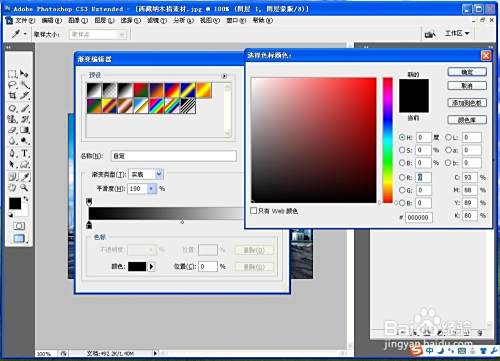 设置前景色为黑色,设置图片从上到下的渐变填充为黑色到白色的渐变色,如图