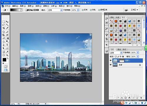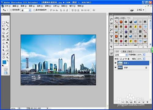 再次打开一张海边风景图片,将其移动到当前图层,如图