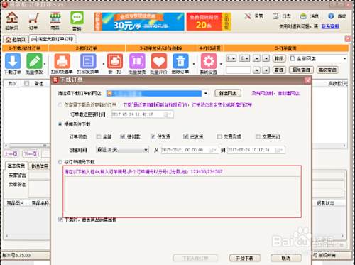 跳转如下界面,在下面方框内把要打印的订单号输入,如果是多个订单用“;”分开