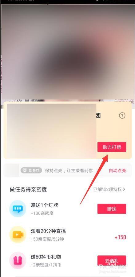 打开抖音APP,找到一个正在直播的直播间,点击左上角主播头像旁边的小心心