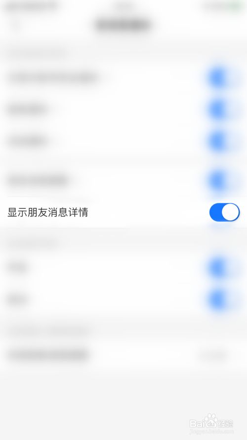 新消息通知设置界面点击“显示朋友消息详情”后面的圆点