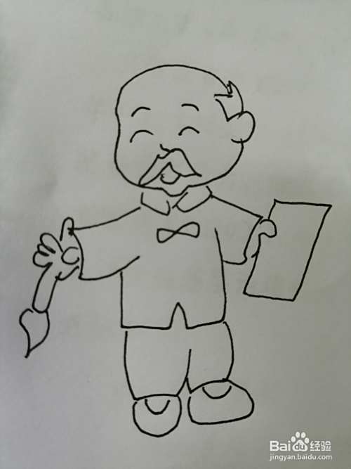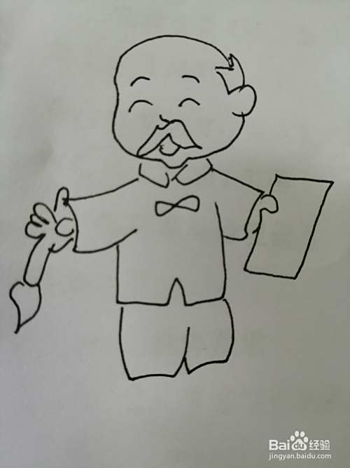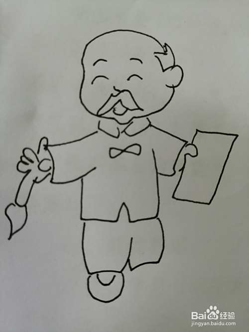 第六步,接着在慈祥的老爷爷的右边手上画出一个长方形,老爷爷手上的纸张画出来了。