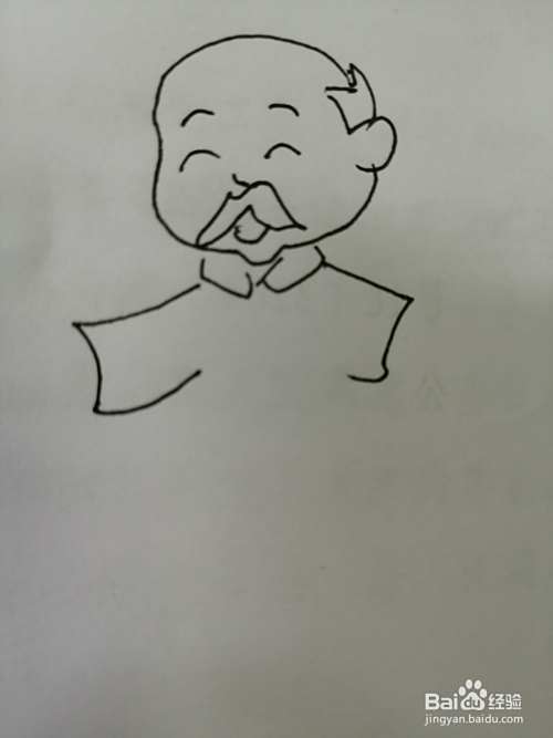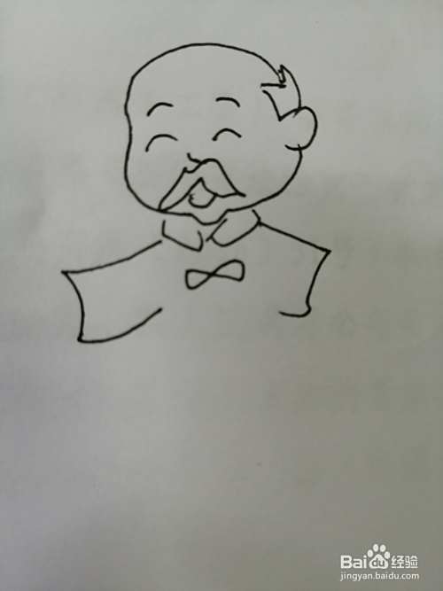 第三步,接着继续画出慈祥的老爷爷的嘴巴,注意在嘴巴两边画出胡须。
