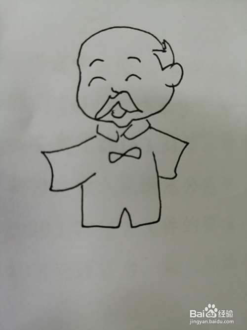 第四步,接着我们继续画出慈祥老爷爷的衣服,注意衣服领口的画法。