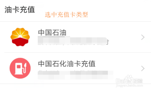 操作五:加油服务界面找到下方的油卡充值,选则你需要充值的类型,操作图片如下