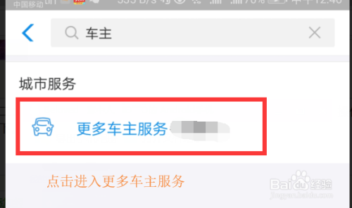 操作三:进入城市服务后在搜索框中搜索车主服务,点击进入,操作图片步骤如下。