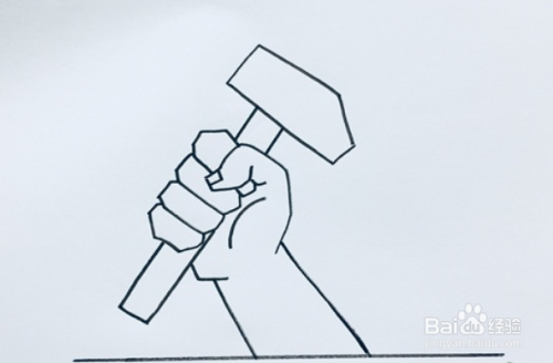 再画上手下部的线条,然后在最下面画上一根水平线。
