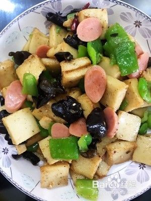 青椒,火腿肠切块