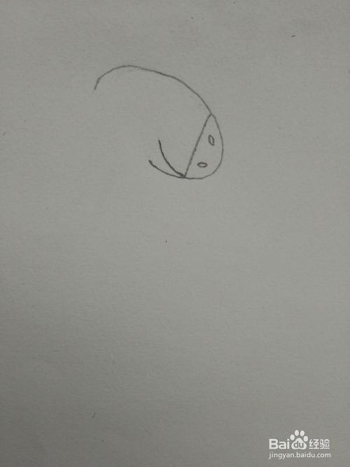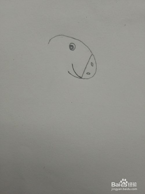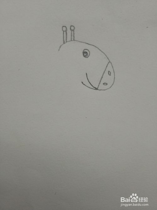 接着画出椭圆形的鼻孔、弯弯的嘴角、圆圆的眼睛。