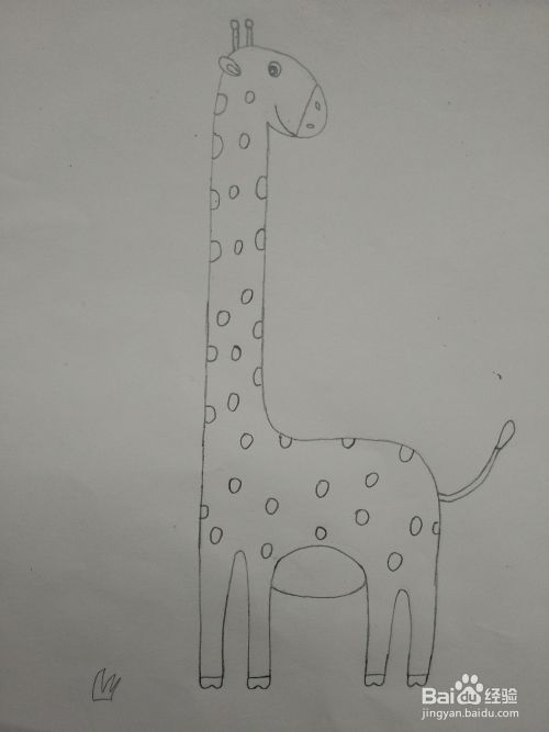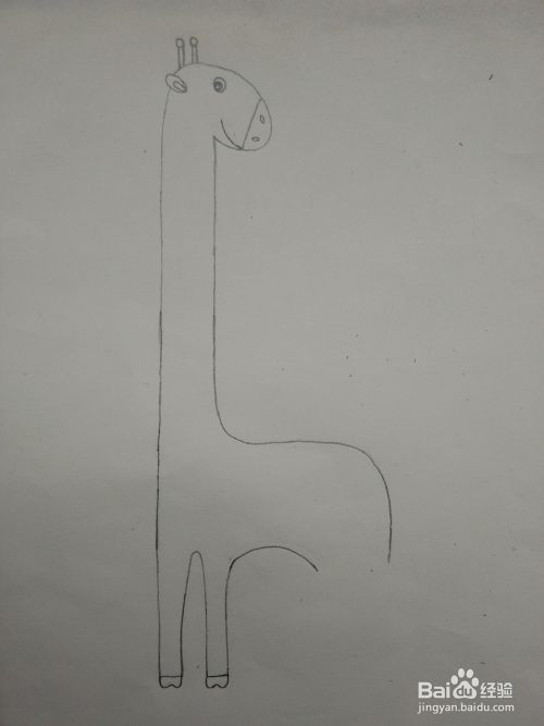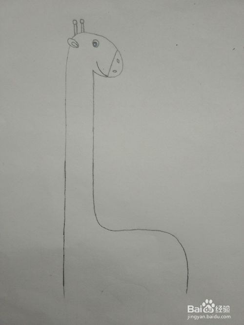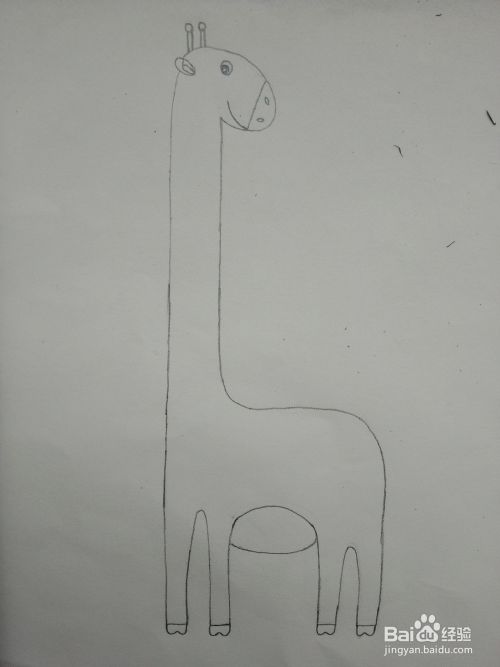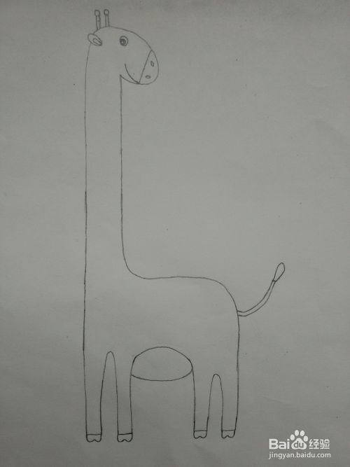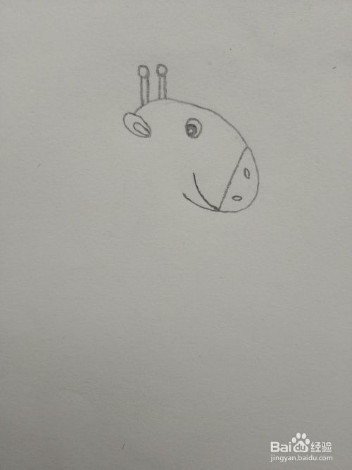 画出长颈鹿的一对小鹿角和其中一只耳朵。