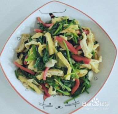 平底锅加热加点油炒香葱蒜,加上红椒丝翻炒断生,然后加豆腐干丝翻炒,最后加上菠菜,盐和五香粉翻炒均匀就可以了。