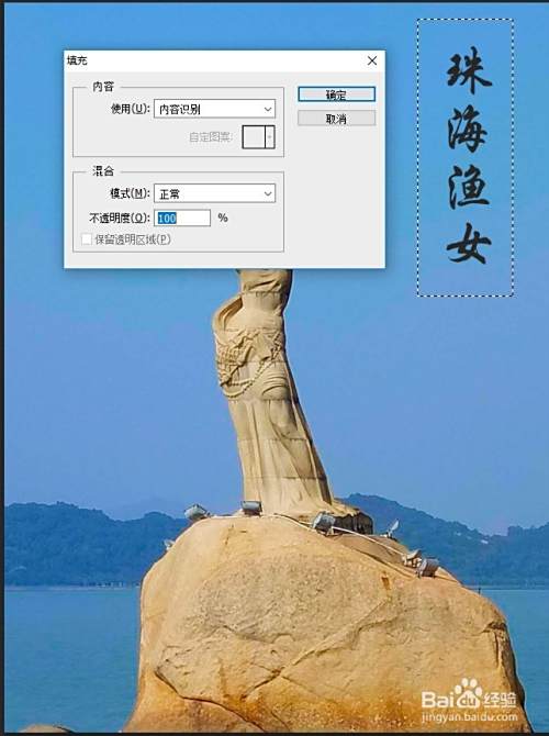 3.选择编辑--填充(shift+F5)调出填充对话框,使用内容识别,其他不变,确定。