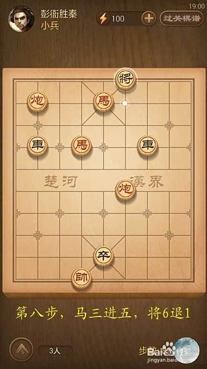 第八步,马三进五[炮将军],将6退1;如果黑方退车吃炮,红方马五退四,马配炮将军胜出。